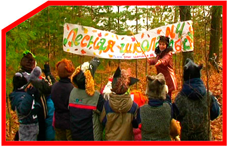 Зверята делятся впечатлениями. Они решили навестить зверят из соседнего леса, угостить их грибами из своего леса. Зверята, их родители, Учитель, инструктор по фитнесу, товарищ милиционер, доктор Айболит собираются у автобуса, на котором вывешены соответствующие знаки. Они хором говорят девиз лесных жителей:
