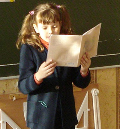 На фото: стихи читает Смолова Маша: