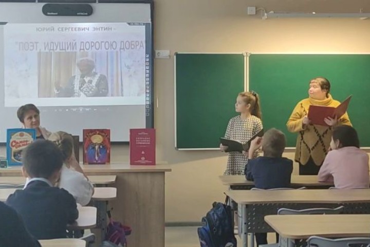 Для учащихся начальных классов прошло чудесное мероприятие «Юрий Энтин – поэт, идущий дорогою добра», посвящённое биографии и творчеству поэта-песенника Юрия Сергеевича Энтина. Провели его победительница проектов «Интерактивный театр Юрия Энтина» и Международного фестиваля детского и юношеского творчества Мария Конорева и библиотекарь и режиссёр Евгения Макеева.