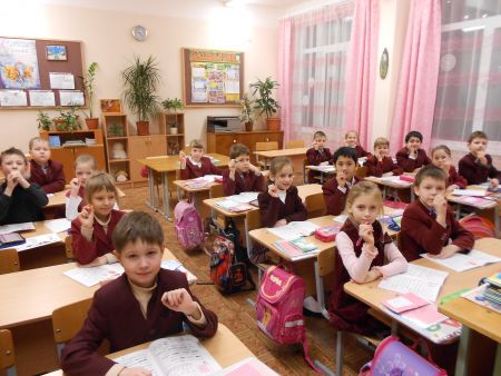 Особое внимание уделяю каллиграфии. В результате анализа и синтеза провожу знакомство с новой письменной буквой. Подготовительная работа включает в себя: письмо под счёт в воздухе, мокрой тряпочкой на доске, крупное письмо в альбомах, обводки по образцам. При этом предупреждаются и анализируются ошибки. Все учащиеся в классе имеют ровный красивый почерк.