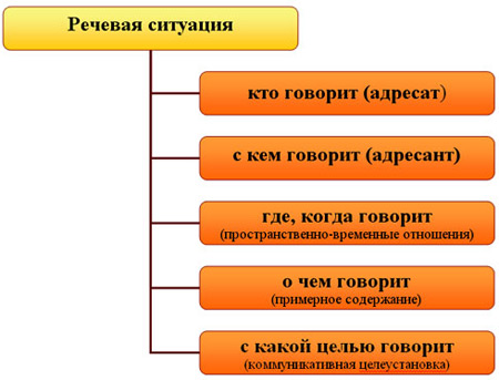 Поскольку оценочное высказывание создается в определенной речевой ситуации, рассмотрим, что понимается под речевой ситуацией. Основными компонентами речевой ситуации являются адресат, адресант, коммуникативная целеустановка, предмет коммуникации, которые могут быть представлены в виде модели: