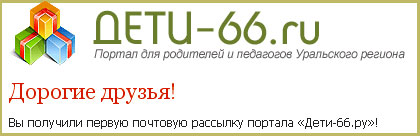 Наш портал стал интернет-журналом о дошкольниках и младших школьниках для родителей и педагогов. Регулярно – 1 раз в неделю – мы будем сообщать вам об интересных статьях, новостях, конкурсах, опубликованных на страницах нашего интернет-журнала. Все зарегистрированные пользователи уже получили первую почтовую рассылку портала «Дети-66.ру»!