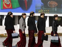 На фото: Студентки в национальных туркменских костюмах. Фото ©AFP