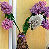 Моя работа сделана из бисера. В ней используются белый, сиреневый и зелёный бисер, а также природный материал.