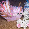Поздравительная коляска представлена в двух цветовых гаммах (розовой и голубой) для новорожденной девочки и мальчика. Техника: скрапбукинг.