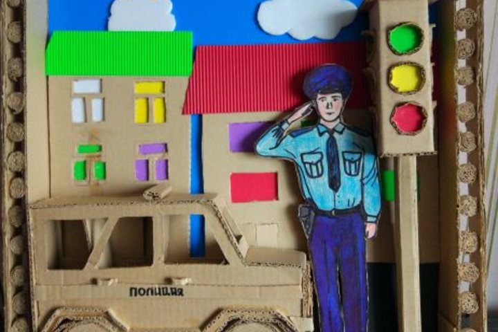 Выполнена в технике квиллинг из гофрированного картона. Ребята очень долго трудились над этой работой.