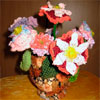 Хочу показать небольшую композицию, выполненную из вязаных цветов и вазочки в технике папье-маше.