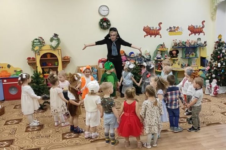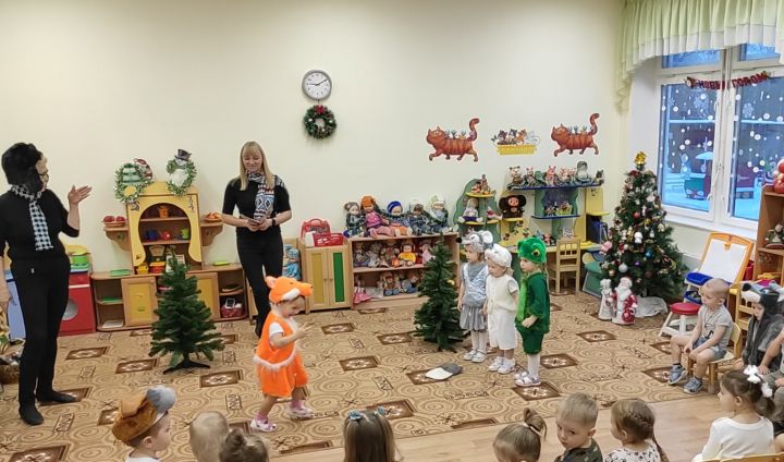 Дети рассаживаются, воспитатель рассказывает сказку, а дети - сказочные герои показывают театрализацию.