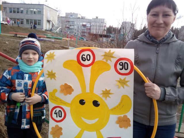 Во вторую половину дня ребята и родители приняли активное участие во Всероссийской семейной акции «Сохрани жизнь!#Сбавь скорость!». Дети обводили и вырезали символ этой акции – солнечного зайчика Тепу, и вместе с родителями оформляли агитационный плакат.