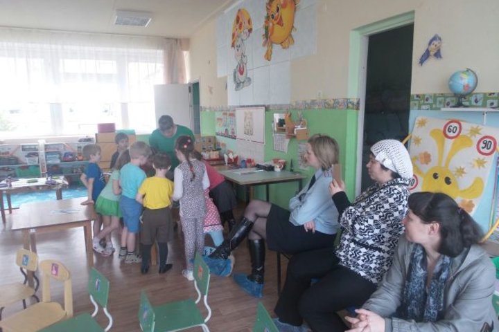 Было организованно и проведено интегрированное занятие «Правила Дорожного Движения». На этом занятии дети закрепили правила дорожного движения: части дороги; знания сигналов светофора; значение дорожных знаков: «Пешеходный переход», «Автобусная остановка», «Жилая зона», «Конец жилой зоны», «Движение пешеходов запрещено»; уточнили характеристики понятий: «Пешеход», «Водитель», «Пассажир».