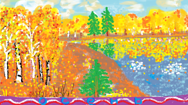 Автор работы — Цацаева Татьяна Анатольевна. Недавно у неё возникло настойчивое желание поучаствовать с детьми своего класса в конкурсах компьютерной графики. Но сама она никогда не рисовала в такой технике. А на днях обнаружила у себя на компьютере программу Paint и решила попробовать порисовать. Вот что получилось: осень.
