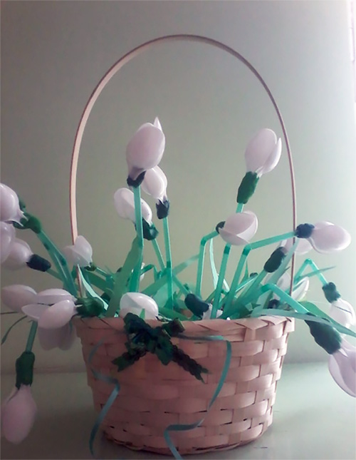 По мере затруднения воспитатель оказывает помощь. После того, как все подснежники готовы, дети ставят их в корзину.