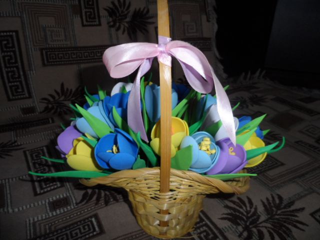 - фоамиран для крокусов (у меня — сиреневый, желтый, белый);