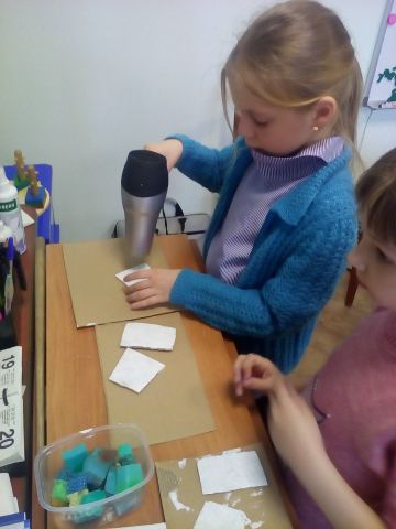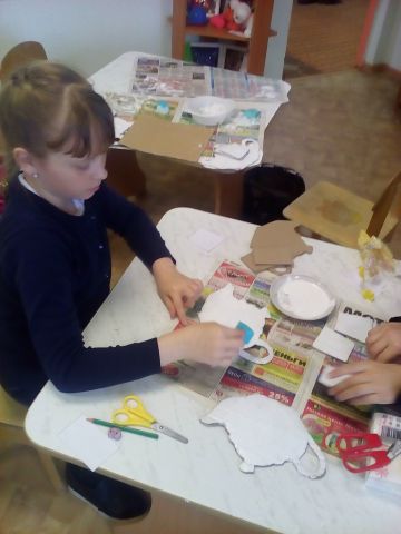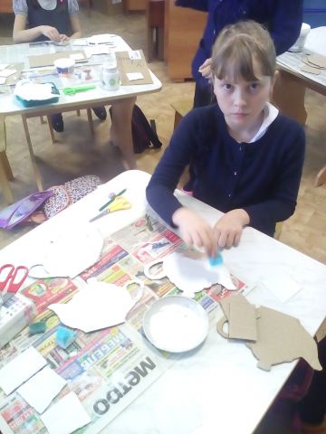 6. Теперь все детали с обеих сторон покрываем белой акриловой краской с помощью поролоновой губки.