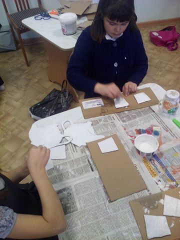 1. Итак приступаем к работе, нам понадобятся следующие материалы: клей, ножницы, картон, акварельная бумага, кисть, канцелярский нож, тесьма и салфетки...