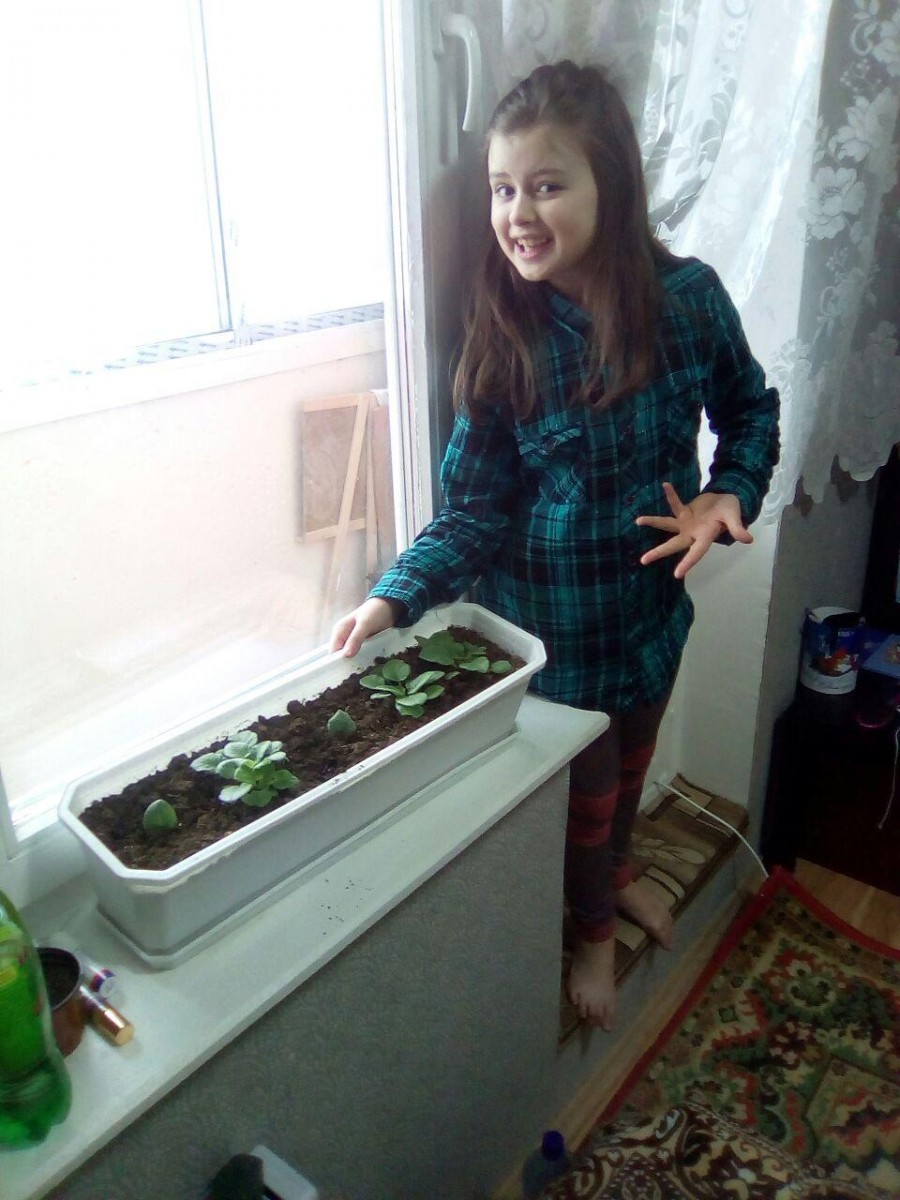 Мы работали над научно-исследовательской работой на тему: «Разведение фиалок на подоконнике». Мы выращивали фиалку из листика. У нас много «зеленых квартирантов», за которыми мы бережно ухаживаем.